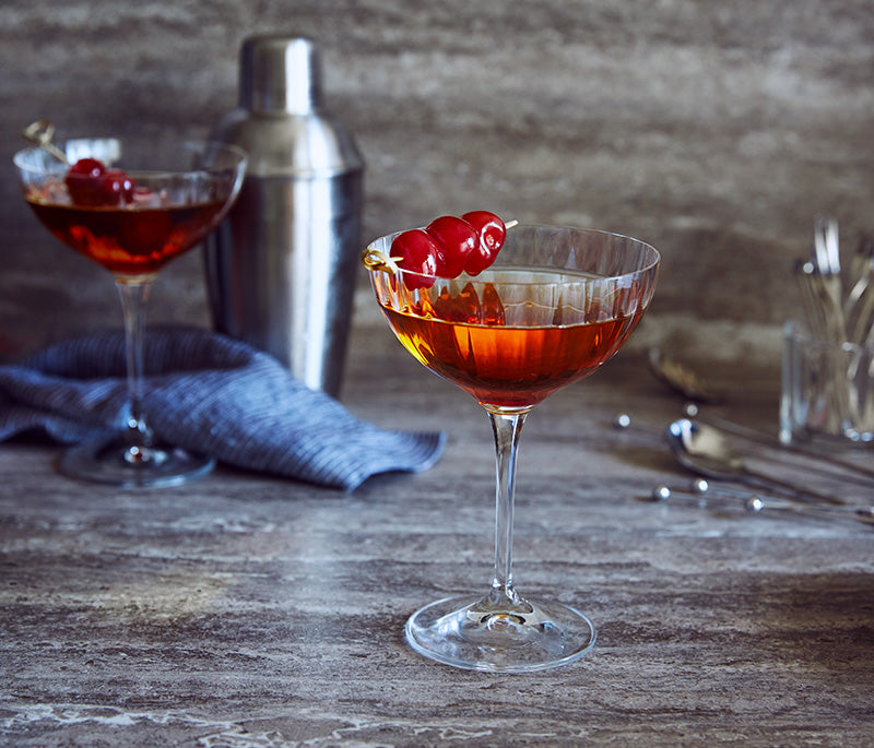 - Strain into a chilled stemmed glass, either a coupe or a martini glass, and garnish with Mezzetta® Maraschino Cherries.*