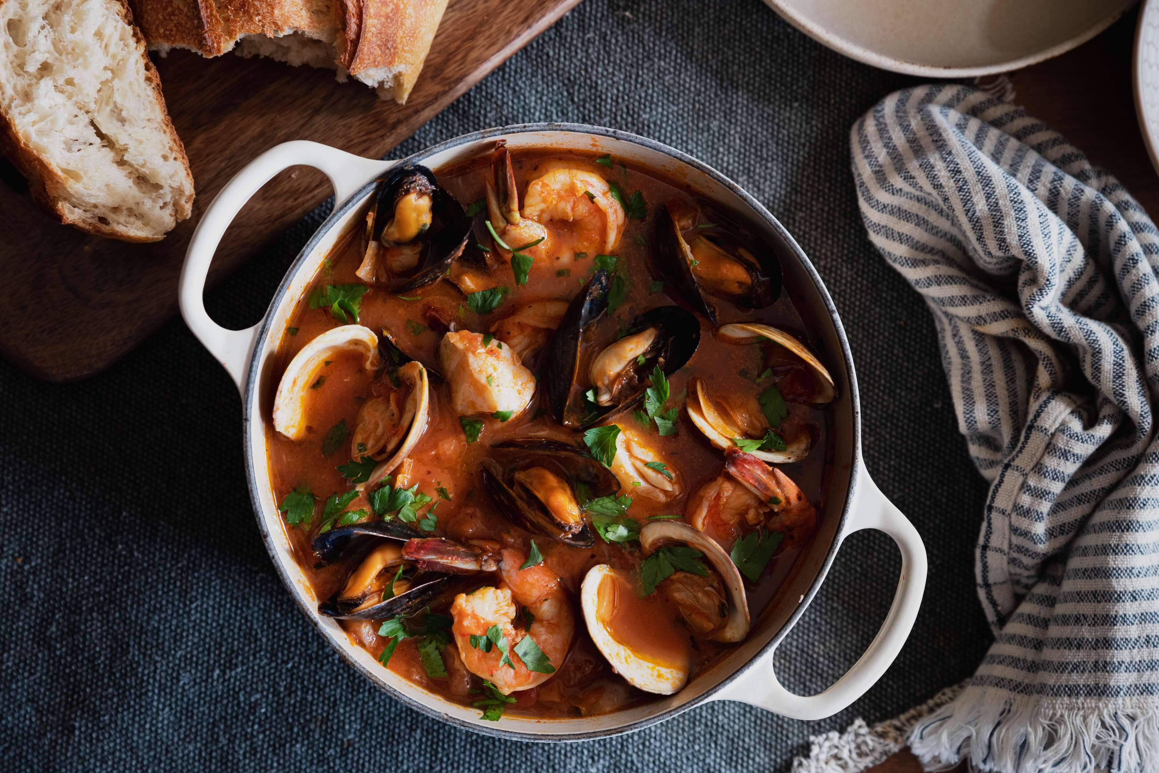 We enlivened this classic seafood stew with our Mezzetta® Family Recipes Spicy Marinara Sauce. Make sure you serve it with a loaf of freshly baked bread— perfect for soaking up all the delicious broth!
